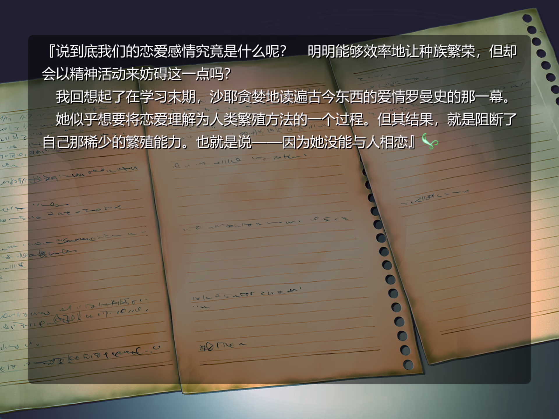 沙耶来到人类世界,学习到人类的爱情理论之后,“误以为”繁衍是注定需要爱情的,于是一直违背了她作为创造物的本能,也是最开始和最后的任务——繁衍。
